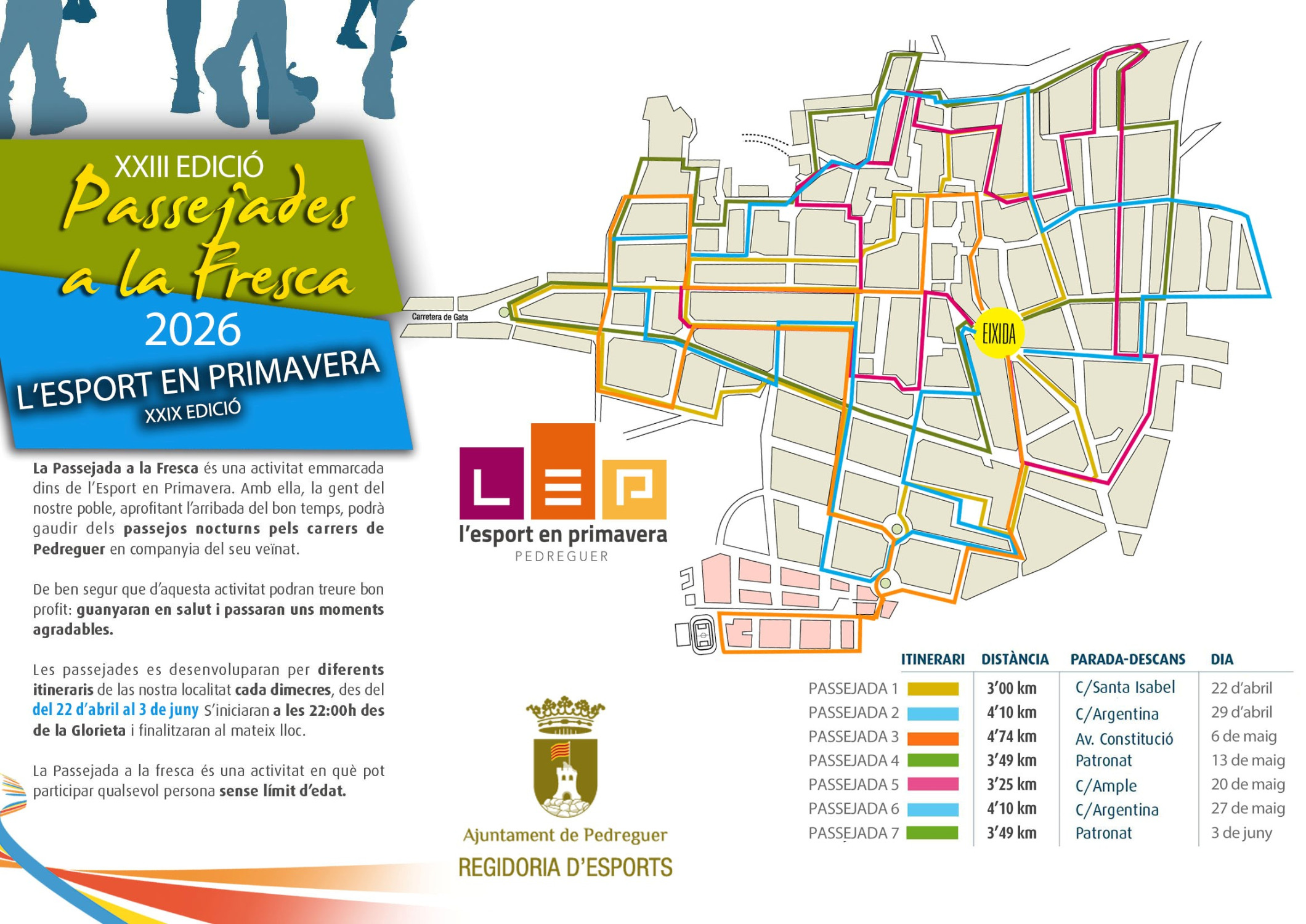 En la imatge podeu consultar els itineraris i dates preparats per a aquesta XXIII Edició de passejades a la fresca.