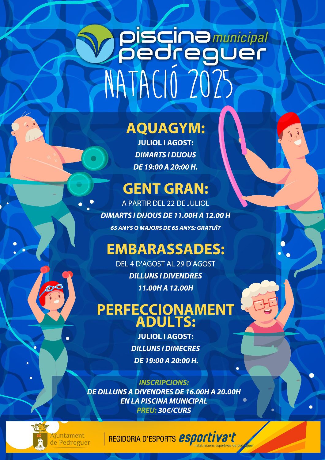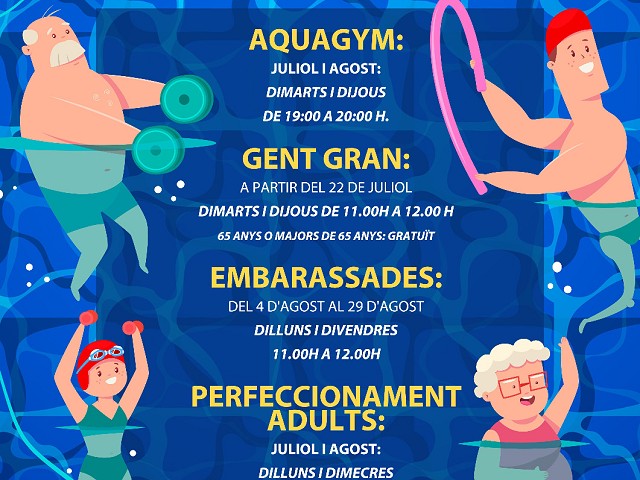 El vas principal és desbordant. Té una mida de 25 m per 12,5 m i una fondària que varia d’1,4 m a d’1,8 m. En aquesta piscina s’imparteixen els cursos de natació (iniciació, intermedi i perfeccionament) i els diferents programes de natació (per a embarassades, per a bebés, natació terapèutica, aquagym), a més d’estar sempre disponible per al bany lliure. També s’hi realitzen activitats puntuals (Lliga de Waterpolo, Escola d’Estiu).