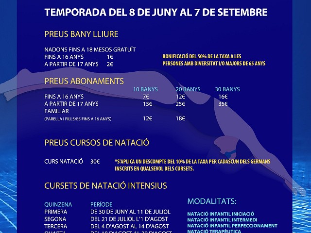 Període d'obertura: Del 9 de juny al 7 de setembre.