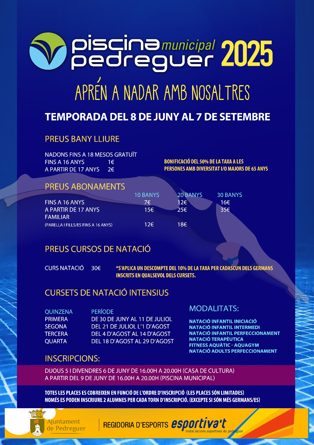 La Piscina Municipal de Pedreguer és una instal·lació esportiva de temporada estival (de juny a setembre). Compta amb dues zones diferenciades: el vas principal i el vas d'ensenyament.