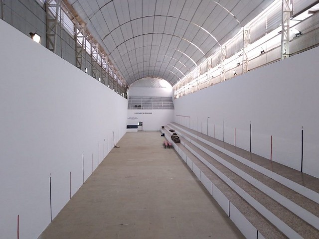 Es tracta d’una pista coberta rectangular que mesura 58 metres de llarg (zona que ocupen les parets més llargues o muralles) per 9,9 metres d’ample (els extrems de la pista, on es troben els frontons). Com és habitual als trinquets, les parets estan pintades de blanc perquè destaque la pilota i el sòl és de ciment.